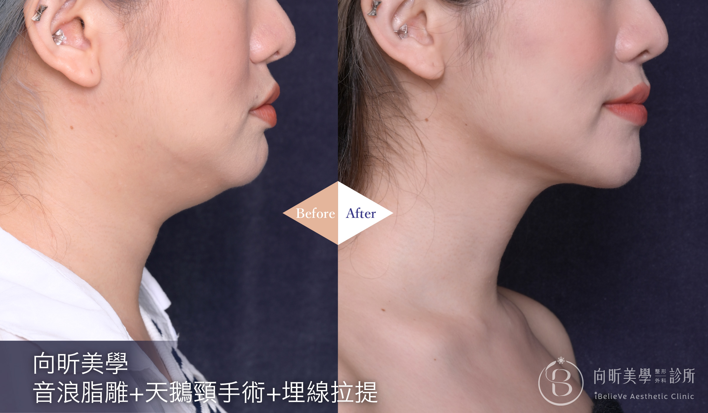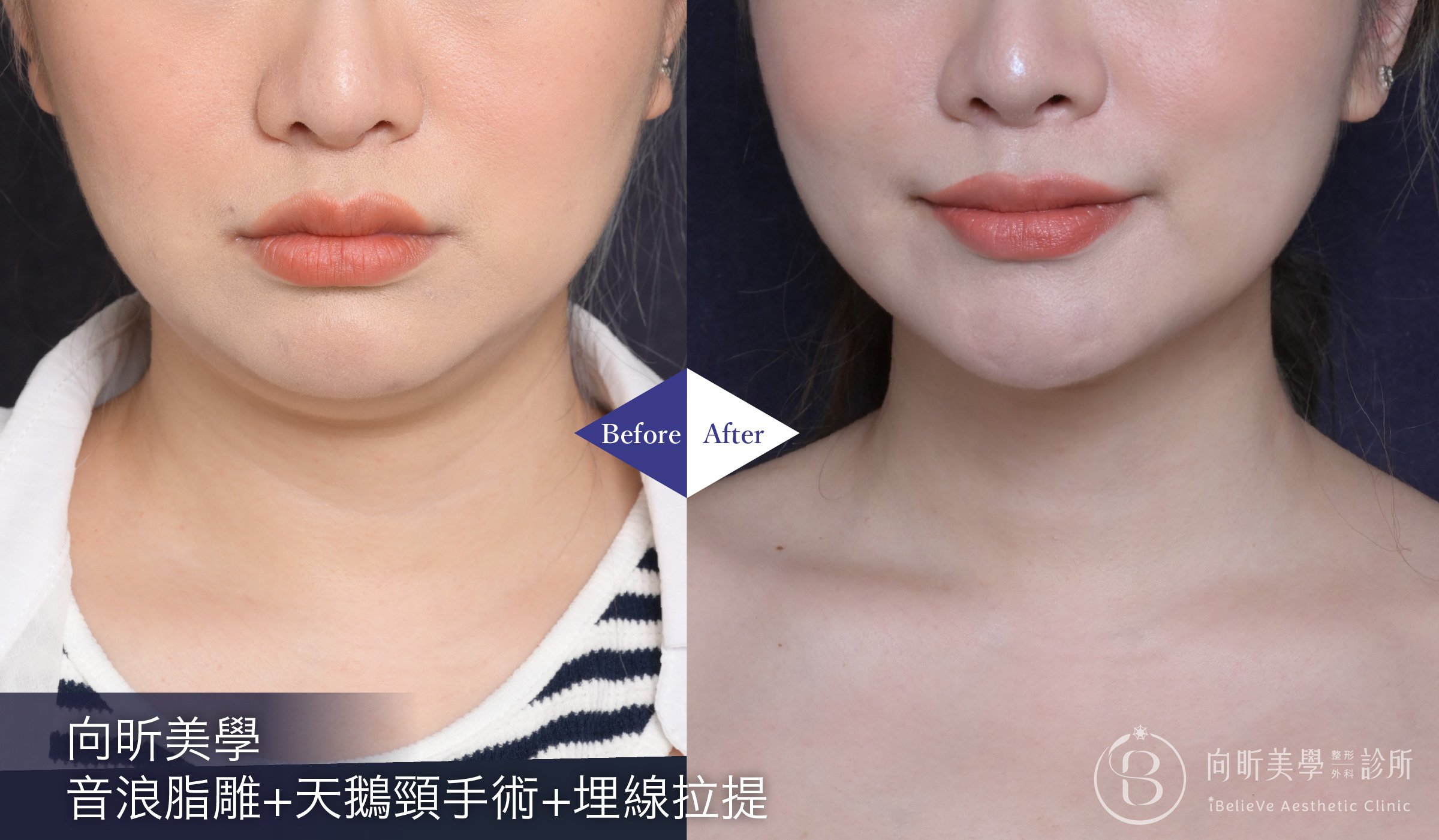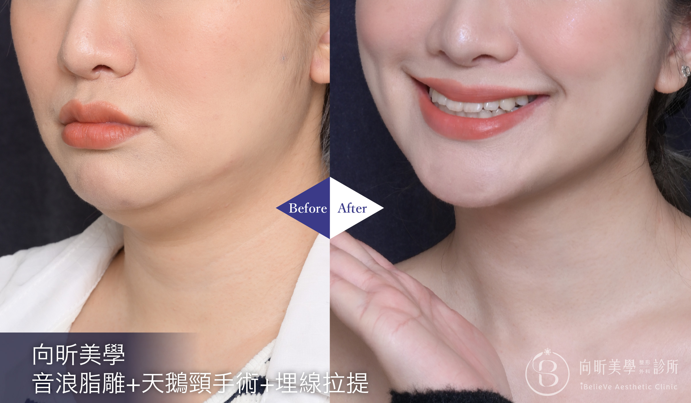 透過音浪脂雕技術精準處理下巴與下顎線的多餘脂肪,雕塑出乾淨俐落的輪廓線條。