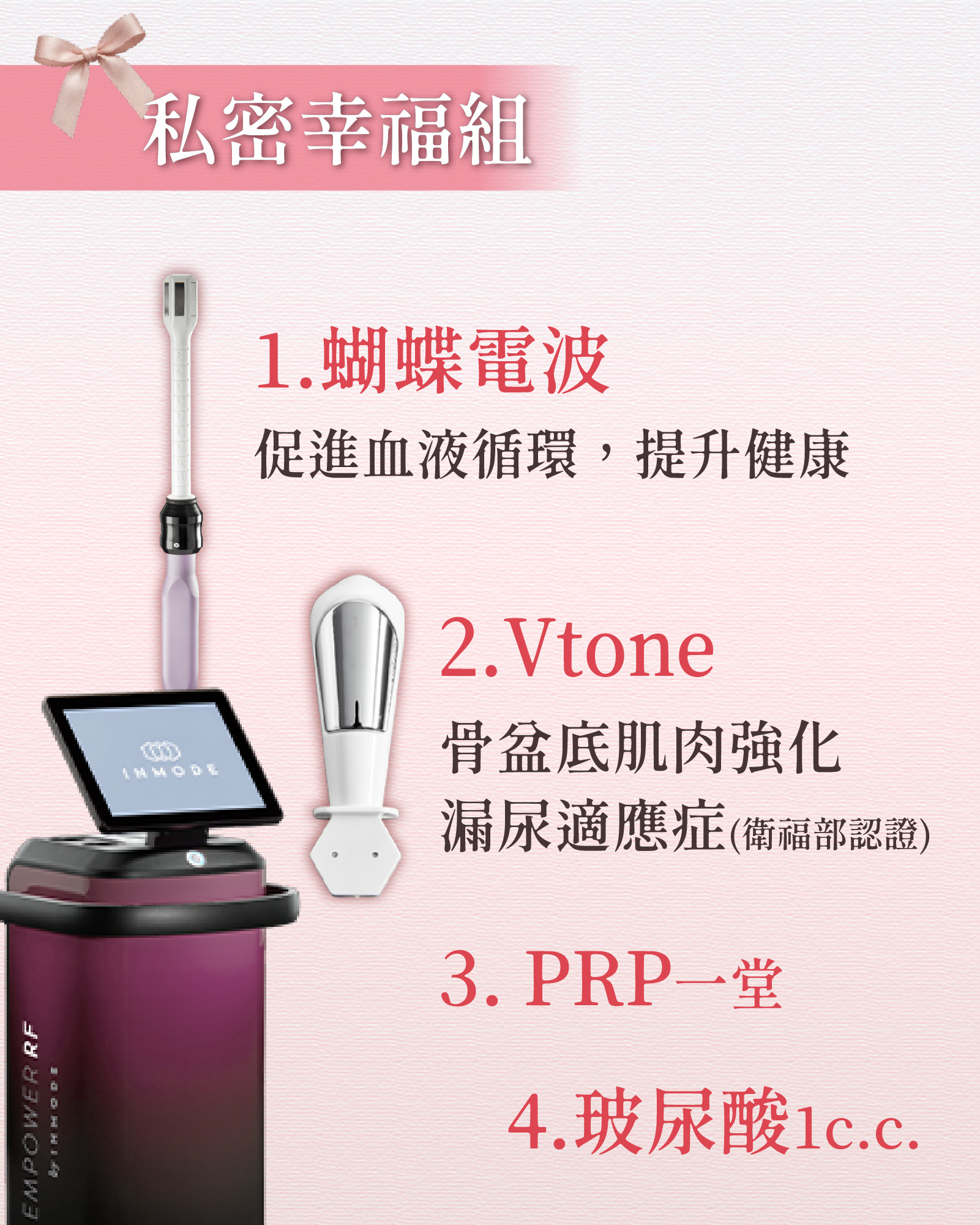 💬 顧客回饋 「蝴蝶電波和Vtone做完之後對漏尿改善很多,從完全憋不住,到來得及把手邊的事情做完再去廁所。」 「感受提升超明顯,我整個人覺得自己狀態變好了,親密時也能更享受!」