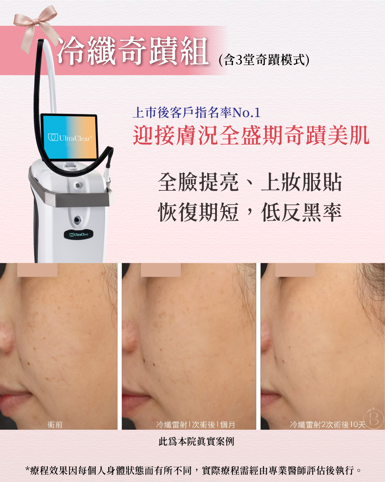 上市即成為向昕美學客戶指名率 No.1 的療程!三堂 UltraClear® 冷纖雷射以 3D 奇蹟模式,打造有如全臉刨光般的奇蹟美肌體驗。