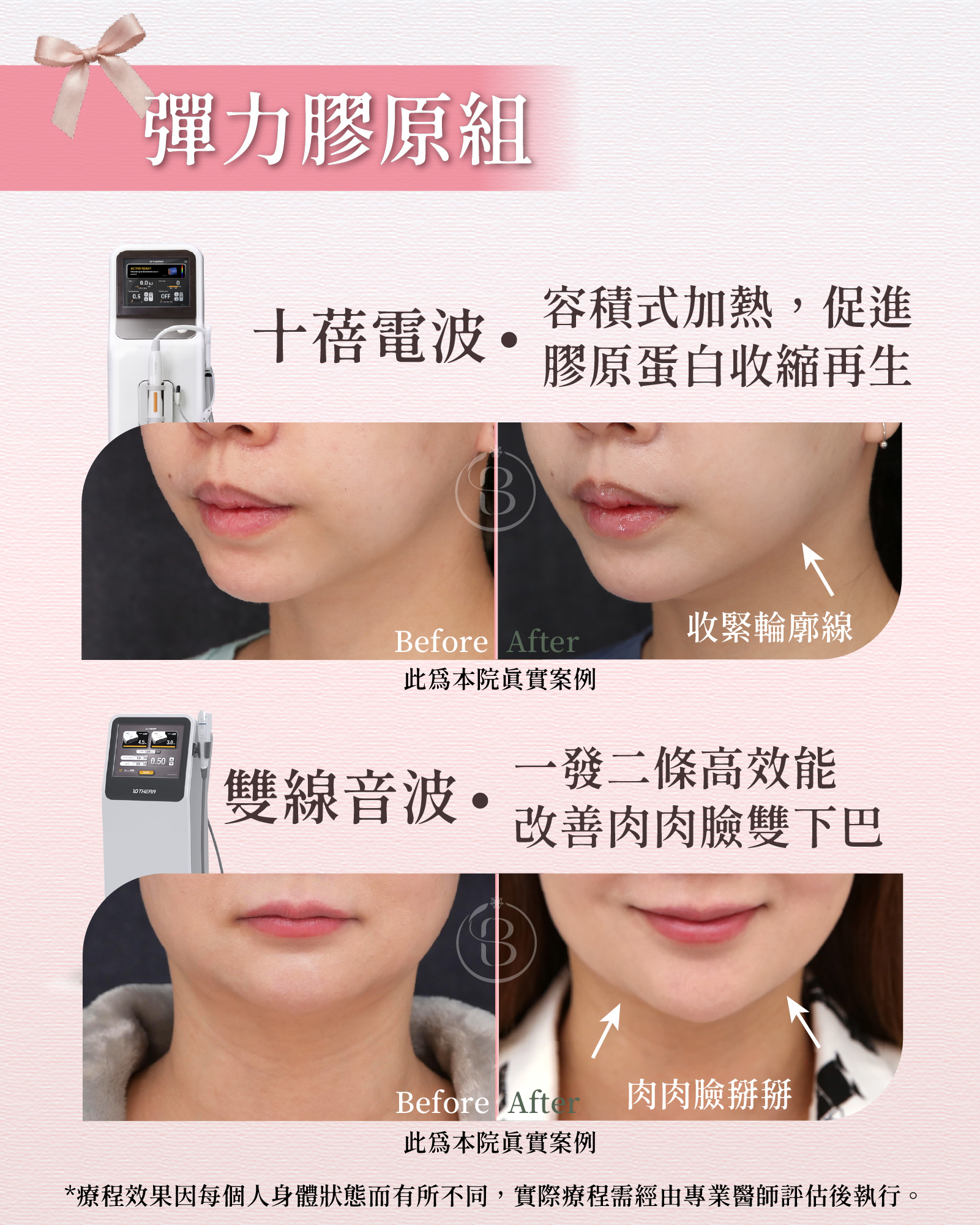 留住青春感、又不想看出醫美痕跡的首選。彈力膠原組以「自然系醫美」為核心,三種技術全層次協作,由外到內全面抗老。