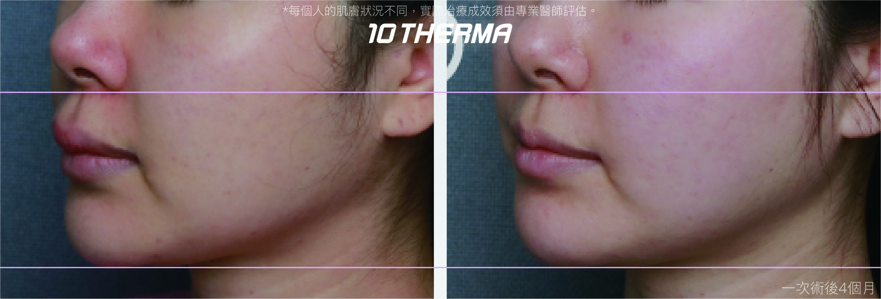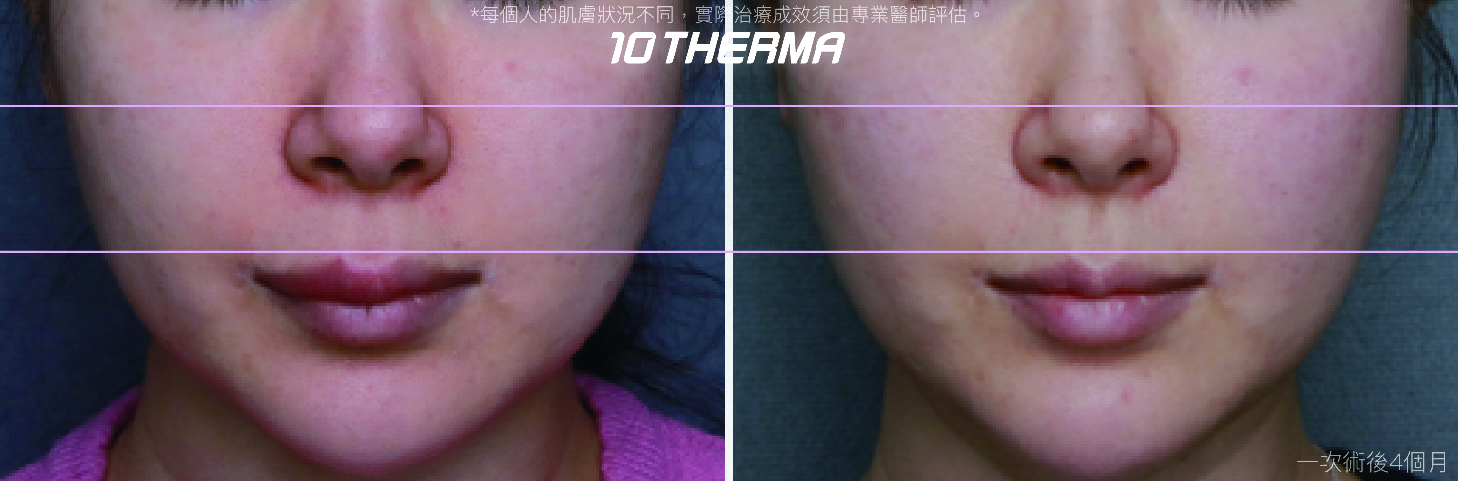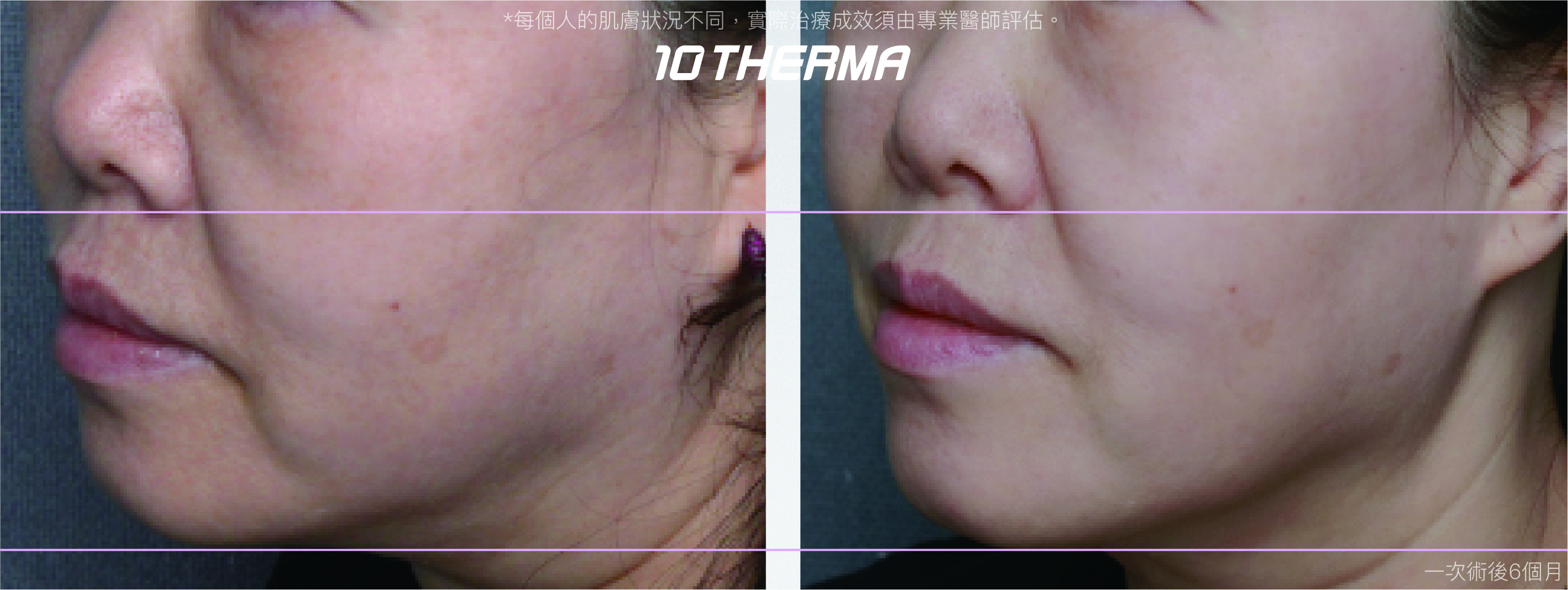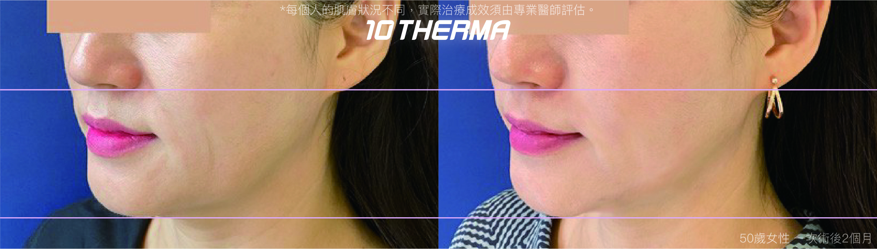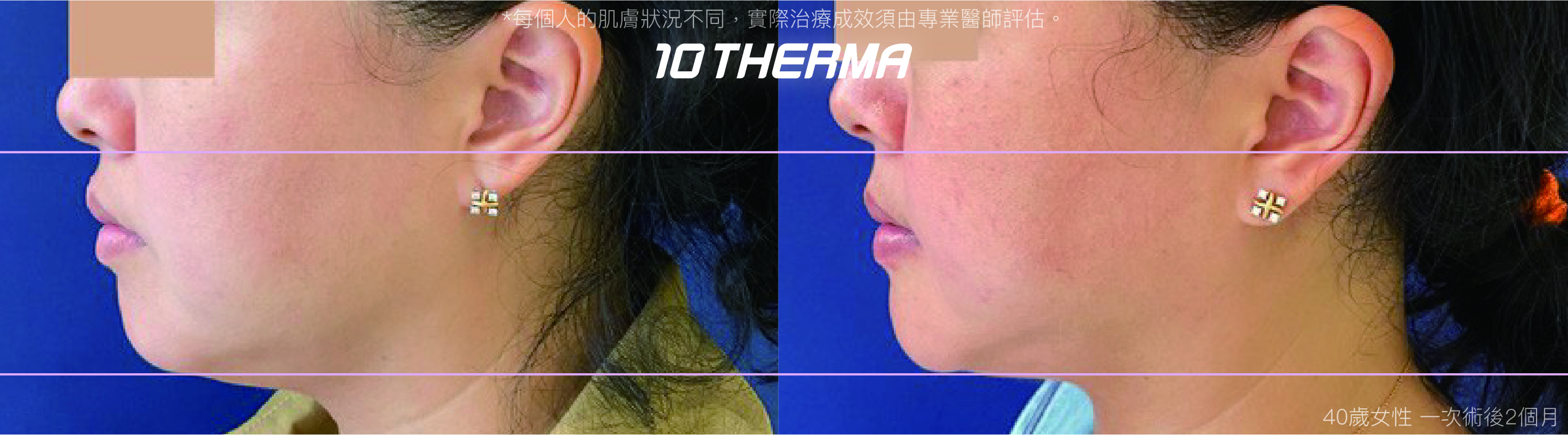 十蓓電波10 THERMA是來自韓國的新一代單極電波拉提技術,以容積式加熱為核心,能將能量深入傳導到真皮層與皮下組織,讓膠原蛋白即時收縮,並在接下來的數週至數月內持續啟動膠原蛋白與彈性纖維的新生與重組。療程後肌膚會逐漸恢復彈性與緊緻度,不僅能改善鬆弛、下垂、嘴邊肉、法令紋、木偶紋,還能淡化皺紋、細紋,讓臉部線條更立體年輕。