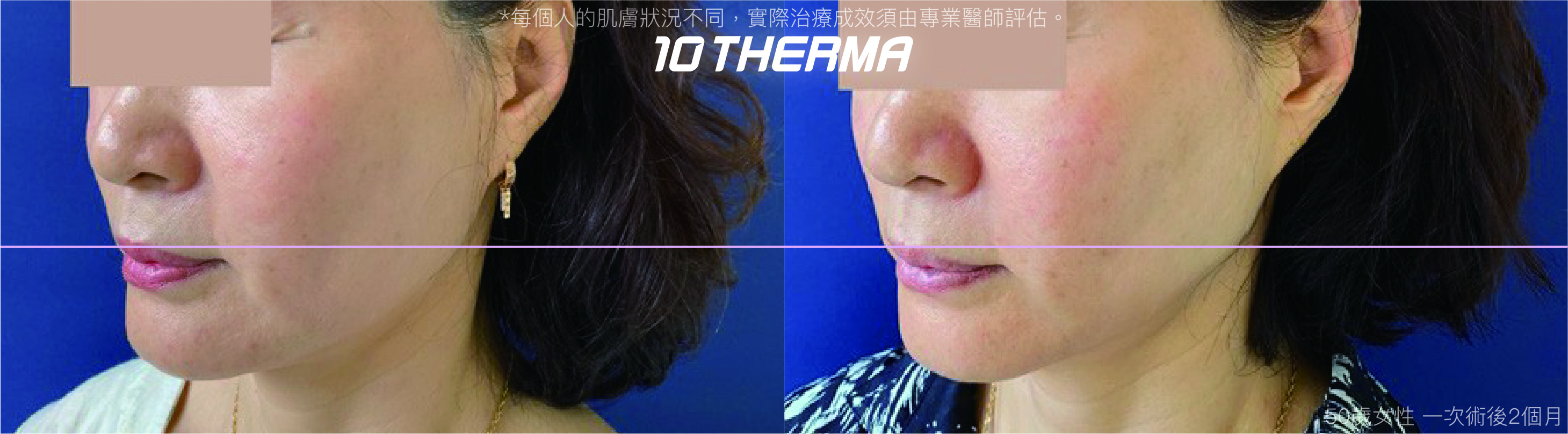 十蓓電波10 THERMA是來自韓國的新一代單極電波拉提技術,以容積式加熱為核心,能將能量深入傳導到真皮層與皮下組織,讓膠原蛋白即時收縮,並在接下來的數週至數月內持續啟動膠原蛋白與彈性纖維的新生與重組。療程後肌膚會逐漸恢復彈性與緊緻度,不僅能改善鬆弛、下垂、嘴邊肉、法令紋、木偶紋,還能淡化皺紋、細紋,讓臉部線條更立體年輕。