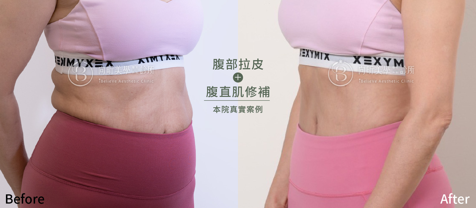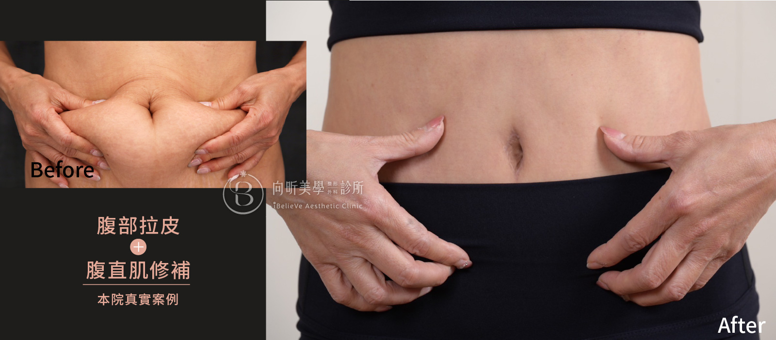 腹部拉皮是去除腹部多餘贅皮、妊娠紋,修補腹直肌分離,可合併抽脂的腹部重建手術。