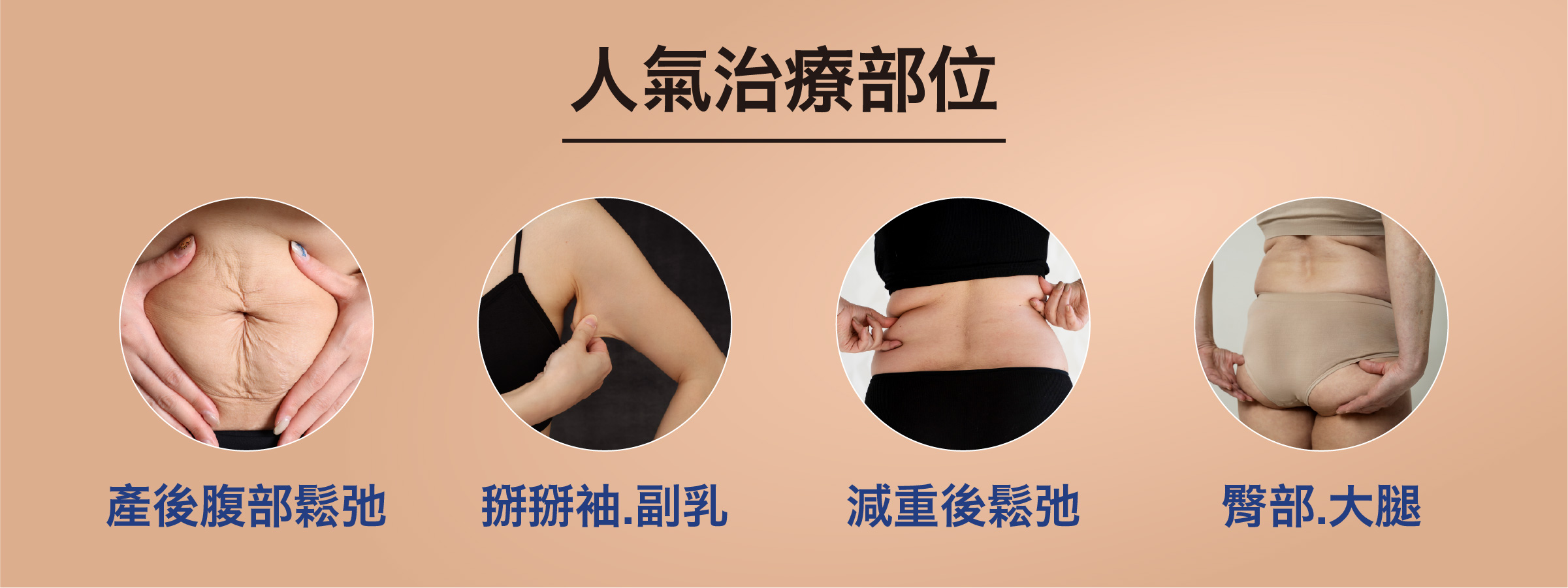 能一次處理深層脂肪與皮下結締組織的鬆弛,特別適合腹部、手臂、大腿等部位。